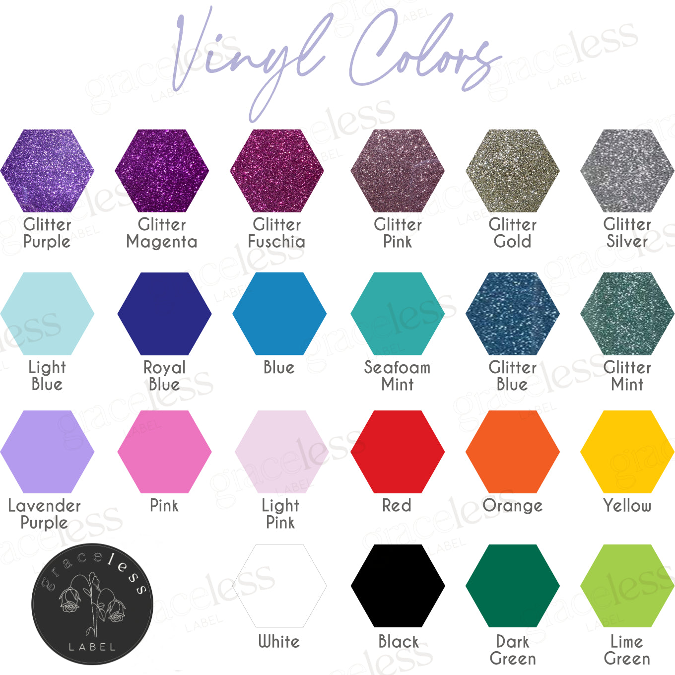 Vinyl colors used for the featured elephant in the first photo are Glitter Fuchsia and White.